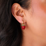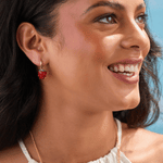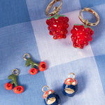 Pack your perfect picnic—ear edition. This huggie earring set comes with three removable charms so you can mix and match your mood: glossy glass raspberries, a miniature jam jar with a red gingham lid and gold ribbon, and a pair of sweet cherry charms with ruby-red crystal sparkle. Whether you wear one pair, mismatch them, or stack them with other hoops, these playful pieces serve up summer vibes with every wear. It’s your picnic—style it your way.