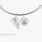 Tradition dictates that a first anniversary gift should be made of paper — but that doesn't mean it can't be stylish jewelry, too. This first anniversary bangle bracelet features a paper airplane charm, and a crystal-adorned accent charm that says "Happy First Anniversary." Gift it (or wear it!) to celebrate forever love.