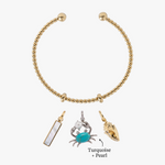 Yes to sunny days and beachy vibes. This bundle includes a mother-of-pearl bar charm, a turquoise-and-pearl crab, and a shell charm for the ultimate coastal stack. Comes with a free rope cuff base for easy layering.