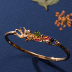 Discover the cuff, a playful fall-inspired bangle featuring dimensional motifs and vibrant enamel accents. This tension cuff showcases a charming mix of stones—moss agate, tiger's eye, blue aventurine, and pearl—adding natural beauty and a touch of whimsy to your look. Perfect for embracing the season with style and a hint of enchantment.