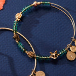 This Woodland Beaded Bangle features translucent green glass beads with an antique luster finish, accented by charming fox head, mushroom, snail, and pinecone beads. Its playful, whimsical design captures the spirit of fall woodland adventures, making it perfect to wear alone or stacked with other favorites. Pair it with styles from the Woodland collection for a fun, nature-inspired look that adds a touch of magic to any outfit.