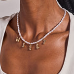 Celebrate your status with this charming pearl necklace featuring puffy bubble letters that spell out "WIFEY." Adorned with sparkling crystal accents and our signature etched logo star details, this playful piece combines elegance with personality. Perfect for newlyweds or any "wifey" who loves a touch of fun sophistication.
