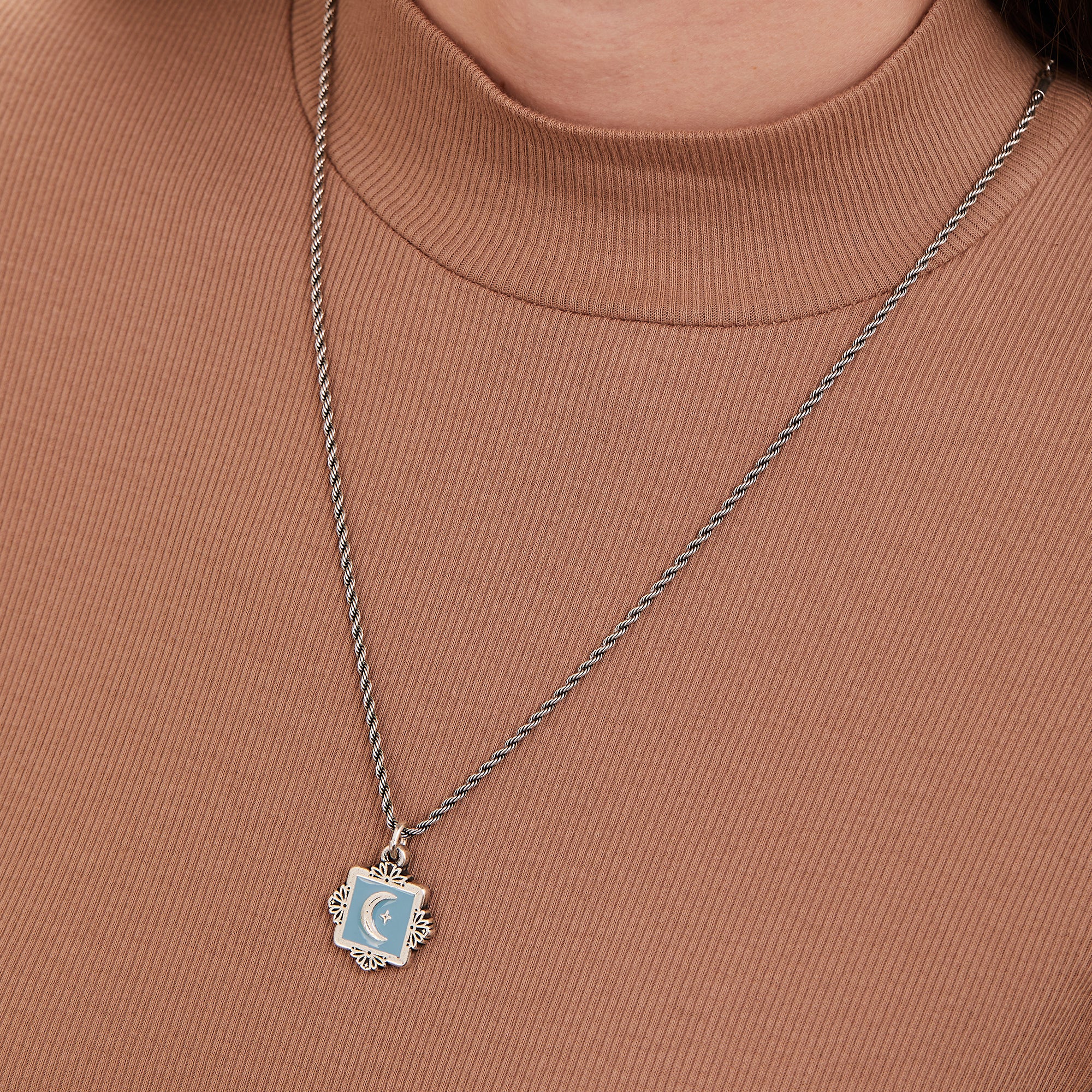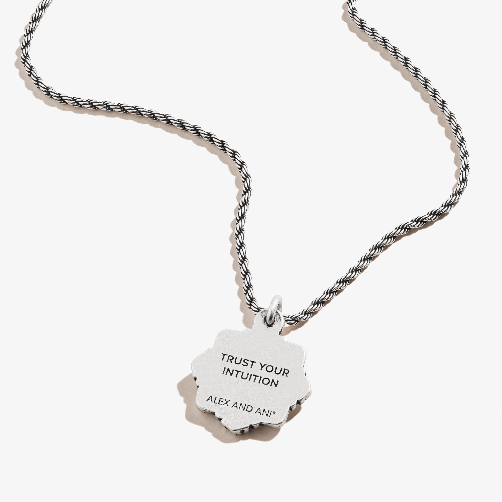 Glowing softly against the black sky, the moon reflects the light of the sun. Ruler of the water and a symbol of woman’s divine power, she controls the ebb and flow of the tides, cycles of change, and intuitive transformation. The moon is an eternal reminder that light is ever-present in our lives, and that to fully embrace it, we must trust the sacred power within ourselves.