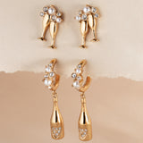 New Year’s Eve isn’t the only perfect time to pop a cork and raise a toast. These earrings each feature a champagne bottle charm hanging from a huggie hoop earring accented with clear crystal and pearl crystal “bubbles.” Wear them to ring in the new year, or for any festive celebration. Studs sold separately.
