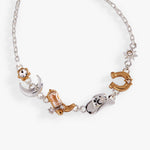 Celebrate your inner rhinestone cowgirl with this playful two-tone charm bracelet. Featuring a silver-plated base and an exciting mix of charms—from a gold-plated sun with clear crystals, silver crescent moon, and two-tone cowboy boots with crystal baguette stones, to a silver cowboy hat, gold horseshoe, and silver faceted star—this bracelet blends celestial sparkle with western style.