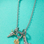 Say howdy to the wild side of your stack. This charm set channels desert heat, dusty roads, and iconic Western vibes—perfect for adding a little edge to your everyday style. The interchangeable trio includes a gold and silver cow skull, a dimensional cactus with shiny silver spikes, and a silver boot charm featuring a gold star detail and hidden etched logo underneath. Crafted in a mix of shiny gold and shiny silver stainless steel, each piece is accented with a CZ on the back. Style them solo or all together—these minis bring full Western energy no matter how you wear them.