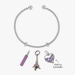 Say bonjour to a romantic stack of European-inspired charms—Eiffel Tower, hearts, and dreamy amethyst details. Comes with a free French Rope Cuff base for easy styling.