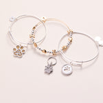 Celebrate your pet passion with this playful beaded bangle! Featuring a gold-plated base with charming gold bones, hearts, and paw beads mixed with shiny silver spacers, it symbolizes love for dogs. It’s a fun and affordable twist on our popular paws of love collection—perfect for showing off your furry affection in style.