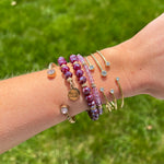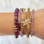 Accent your stack with a pop of perfectly pastel color when you layer on the Crystal Beaded Bangle featuring glass beads spaced with rondelle textured beads on an expandable wire bangle.