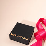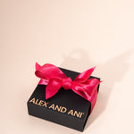 Keep your jewelry safe with this black magnetic jewelry box that says "ALEX AND ANI" across the top, and our classic heart logo on the front-side.