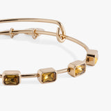 Whether you're commemorating a November birthday or you're drawn to the generosity and joy of the topaz-colored crystal, the Emerald-Cut Birthstone Bangle will add personalized elegance to your stack. This birthstone bangle features seven emerald-cut gold crystals on an expandable wire bangle in a shiny gold or silver finish.