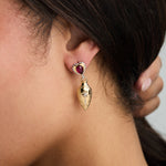 Featuring a two-tone potion bottle charm and amethyst heart, accented with sparkling crystal pave, these earrings make a bold statement. Inspired by celestial themes, they combine meaningful symbols with a standout design you’ll love to wear.