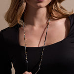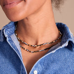 Celebrate loyalty and adventure with the Ride or Die Convertible Necklace/Bracelet. Designed with a 32.5" length that can be worn long or wrapped five times as a bracelet, this meaningful piece spells out "Ride or Die" in Morse code using a bold mix of gold-tone metal beads, jet beads, and black and white seed beads. Strung on elastic for effortless wear, it's a tribute to the ones who always have your back.