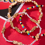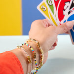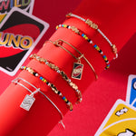 Celebrate family game night with this playful stretch bracelet featuring silver beads and a gold-plated UNO reverse symbol. Its two-tone design adds fun personality to any stack, making it a perfect gift for UNO fans of all ages.
