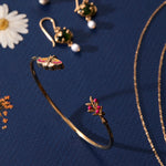 Embrace the charm of fall with the Woodland Moth Flex Cuff, featuring whimsical enamel details of a delicate moth and a berry sprig. This flexible cuff adapts comfortably to your wrist, while the intricate motifs add a playful touch to your seasonal style. Perfect for those who love nature-inspired accessories with a fun twist.