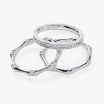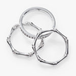 A symbol of strength and flexibility, bamboo is the ultimate accessory. This 3-1 ring set features two golden bamboo motif rings with a pave crystal-covered ring in the center. Designed for versatility, these rings can be worn together or styled separately. Perfect for stacking, layering, or keeping it minimalist!