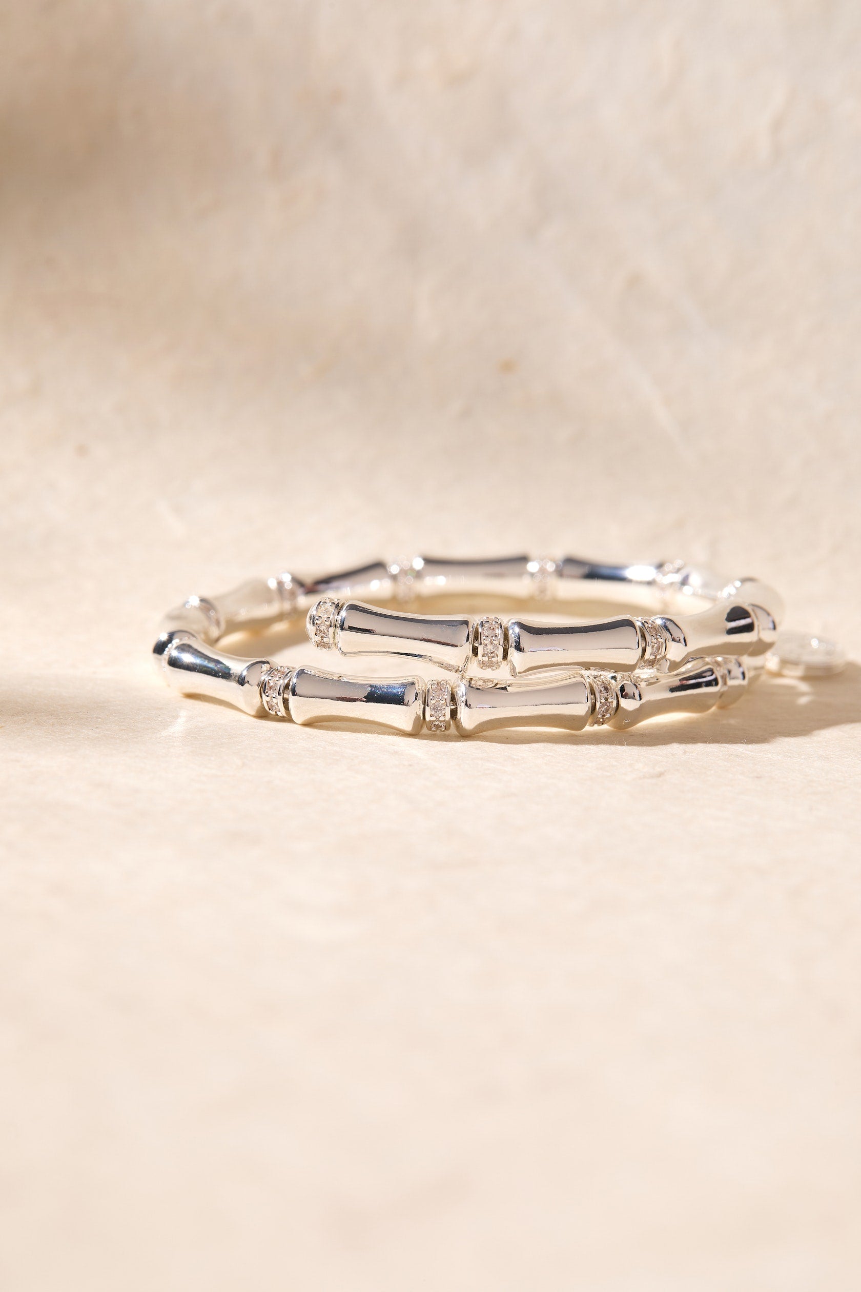 Golden bamboo links with pave crystal spacers make this wrap bracelet divine vacation inspiration. Whether that vacation is a far-flung adventure on tropical shores or a staycation in your hometown, this bamboo wrap bracelet will instantly elevate your look.