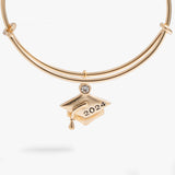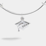 Celebrate their biggest achievements and all the memories and milestones along the way with this 2024 Graduation Cap Charm Bangle bracelet featuring a graduation cap charm engraved with 2024 and accented with clear crystal.