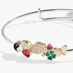 Manifest the energy you need with this Silver Linings Inline Charm Bangle, which features an inline crystal cloud charm surrounded by powerful symbols: a yin yang for balance, an evil eye for protection, a four-leaf clover for luck, a butterfly for transformation and pink crystal hearts for love. Remember: in every cloud, there’s a silver lining. Wear this piece as a reminder to look for it.