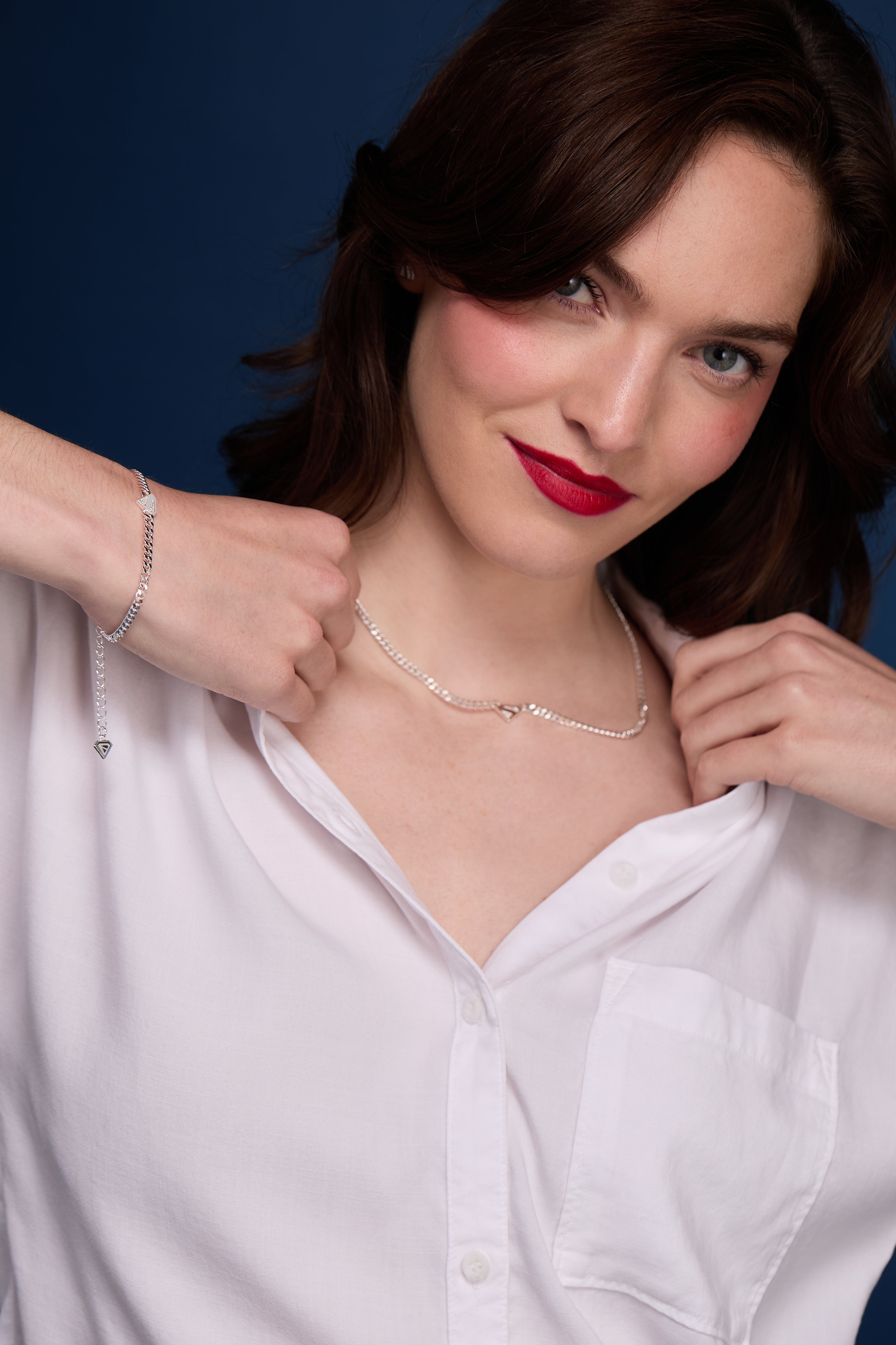The symbol of strength, styled for every day. This silver-tone curb chain necklace features a recessed pavé crystal Superman emblem at center, blending shine with subtle fandom energy. With its small scale and sleek silhouette, it’s a wearable way to keep your favorite hero close — whether you layer it or wear it solo. Superman™ x Alex and Ani collab.