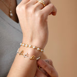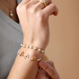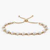 Stack on timeless elegance with the Pearl Bolo Bracelet featuring glass pearl beads framed in silver or gold with a bolo slider closure for a truly custom fit.
