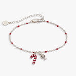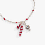 Embrace the holiday spirit with this cheerful Candy Cane Bracelet. Featuring a silver-plated chain with vibrant red enamel, it’s adorned with a red enameled candy cane and a sparkling wrapped candy charm accented by a bezel-set clear crystal. A fun and festive accessory, it adds a sweet touch of seasonal joy to any look.