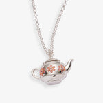 A charming nod to teatime traditions. This silver teapot pendant necklace features delicate pink floral details and opens to reveal a tiny tea bag hidden inside inscribed with "Have a cuppa." A sweet and whimsical piece that celebrates cozy moments and the simple joys of a perfectly brewed cup.