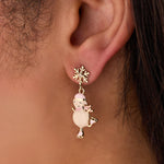 Embrace the magic of winter with this delightful snowman drop earring that captures the joy of frosty adventures. Featuring charming enamel details that bring an ice-skating scene to life, each earring showcases a snowflake stud adorned with a signature logo star and sparkling crystal accents. The whimsical design celebrates those carefree snow days and winter wonderland moments we all cherish. Perfect for adding a touch of seasonal cheer to your everyday look or making a playful statement during the colder months. These festive earrings are ideal for anyone who loves winter's enchanting spirit and wants to carry that holiday magic with them year-round.