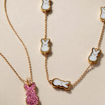 Celebrate everything sweet about springtime and Easter with this PEEPS® Pearlized Bunny Charm Necklace, which features pearlized PEEPS® bunny charms inline on an adjustable-length chain necklace. Wear it to welcome the season — or gift it to somebunny you love.