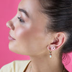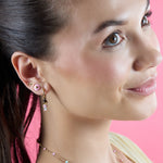 This playful Polly Pocket™ Earring Set includes gold bow studs, pink enamel shell box studs featuring the Polly Pocket logo, and gold huggie hoops with removable doll charms. Pastel enamel accents and the classic bow and shell shapes add charm, while the mismatched doll charms on the hoops let you mix and match for a fun, customizable look. With three pieces to style, you can create endless combinations that celebrate your love for Polly Pocket in a nostalgic and versatile way.