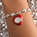 Add a sprinkle of Oz magic to your look with The Wizard of Oz™ Tin Man Linear Bracelet. This playful piece features a red enamel heart charm that holds a dimensional clock, capturing the Tin Man’s longing for a heart. The two-tone custom chain offers a stylish contrast that complements any outfit. Flip the bracelet over to discover an inspiring etched message: "A heart is not judged by how much you love, but by how much you are loved by others."