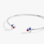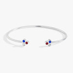 Accent your summer stack with the Red, White and Blue 3 Stone Flex Cuff, featuring a three-stone cluster of red, white and blue crystals on each end.