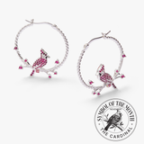 Cardinals are sacred symbols of devotion and loving relationships, in this world and beyond. These cardinal hoop earrings feature clear and ruby crystal-accented enamel cardinal charms sitting on branches inside braided hoops. Reversible in design, they can be worn in two ways, offering versatile styling while serving as a reminder of endless love.
