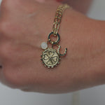 Embrace the new season with the perfect combination of symbols for good fortune. White jade bestows a feeling of peace and calm, while the horseshoe and four-leaf clover symbols bring good luck to the wearer. Effortlessly attract love and luck with these powerful symbols.