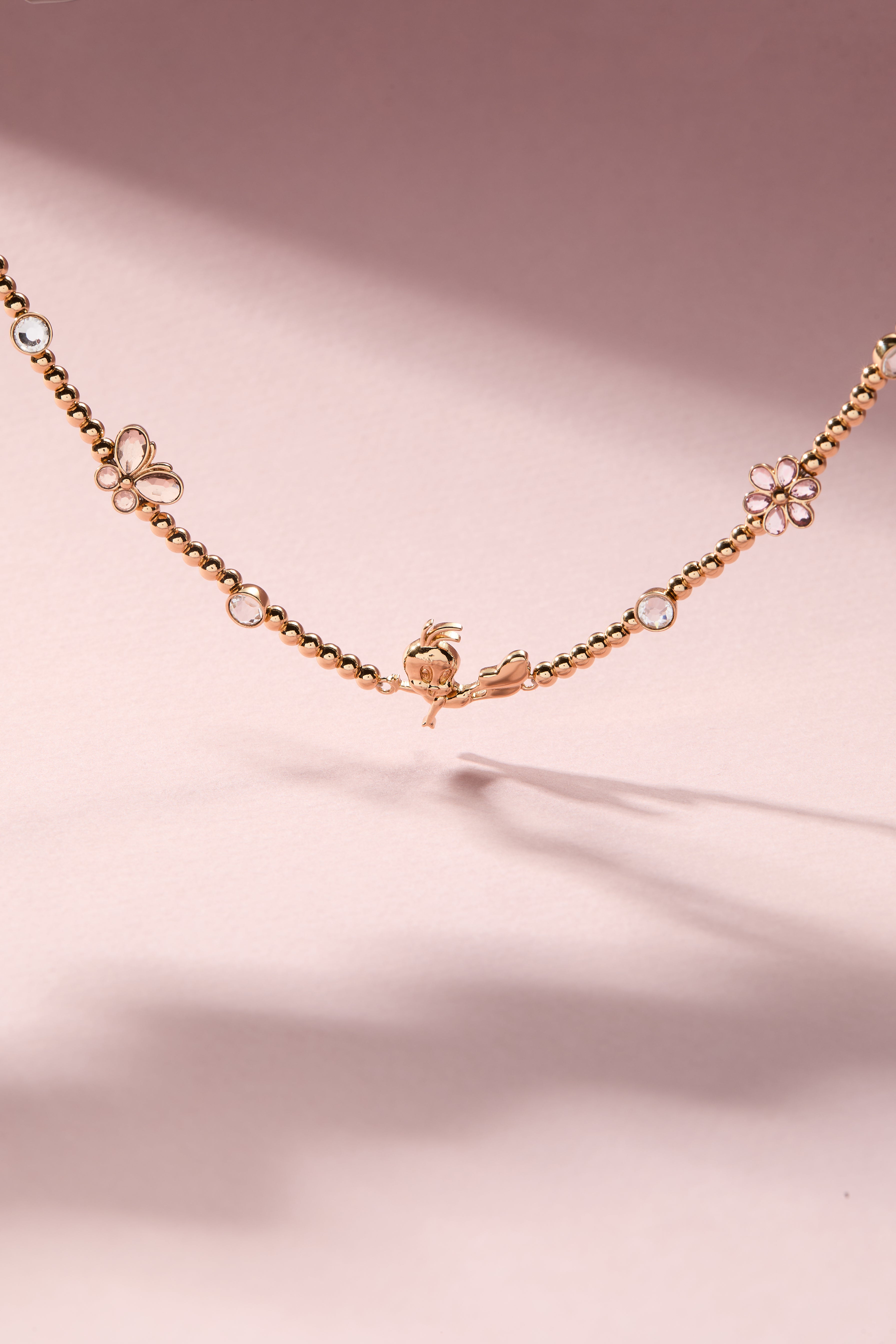 The Looney Tunes™ x Alex and Ani collab brings a playful twist to your everyday stack with the Tweety Beaded Necklace. Featuring a golden beaded chain, sparkling crystal accents, and a sweet Tweety Bird charm at the center, this necklace is full of nostalgic charm and joyful spirit. Finished with soft pops of vintage rose and light peach crystals, it’s adjustable for the perfect fit and ready to add a little extra mischief (and a lot of sparkle) to your style.