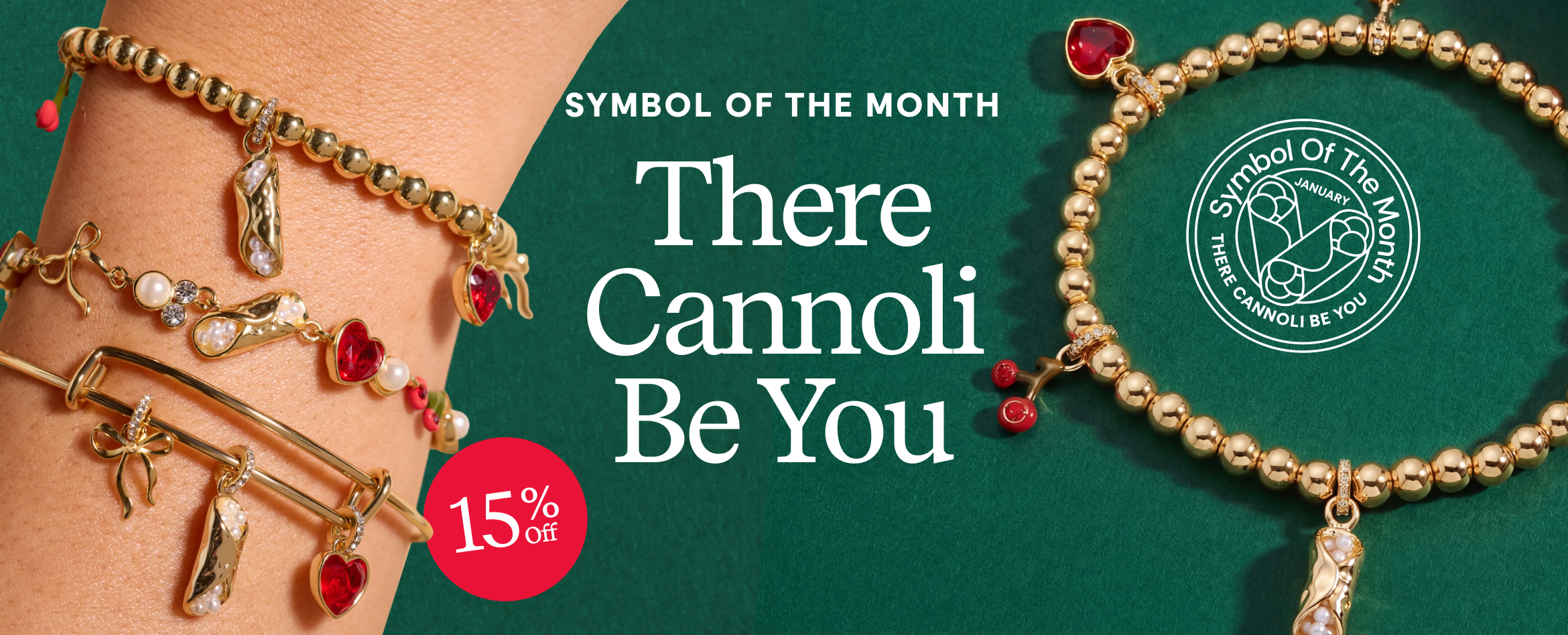 'There Cannoli Be You' Bow & Heart Multi Charm Bangle