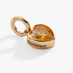 This charm features a sparkling faceted heart-shaped topaz-colored cz stone, perfect for November birthdays, set in a bezel with our signature star cutout on the back. The word "Balance," linked to the birthstone, is etched on the side. Add a fun and meaningful touch to your bracelet or necklace stack with this vibrant birthstone charm that brings both color and personality.