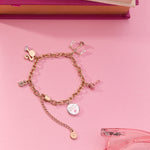 Celebrate empowerment and ambition with this stunning Barbie™ Legal Charm Bracelet, a perfect gift for the leader in your life. This beautifully crafted bracelet features an inspiring collection of dimensional charms that tell a story of strength and purpose. Admire the striking pink enamel gavel symbolizing justice, the sparkling pave Barbie "B" logo charm representing iconic style, and the meaningful mantra charm inscribed with "powered by purpose" to inspire daily. The two-tone scale charm and elegant two-tone judge silhouette complete this sophisticated design, all strung together on a classic chain bracelet. Whether you're treating yourself or surprising someone special, this piece captures the spirit of breaking barriers and pursuing your dreams with confidence and grace.