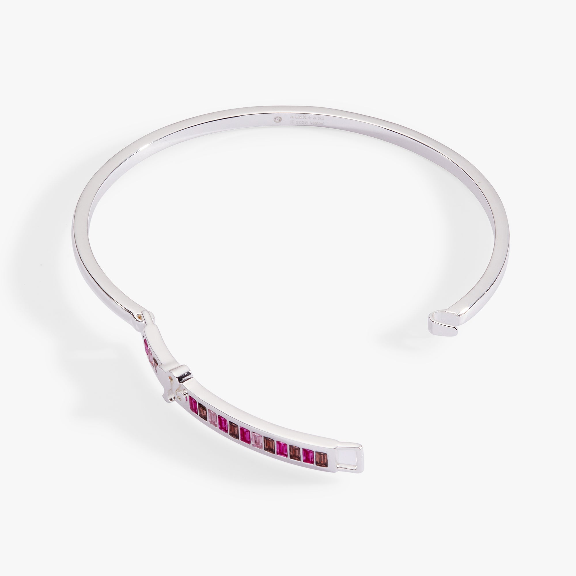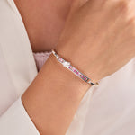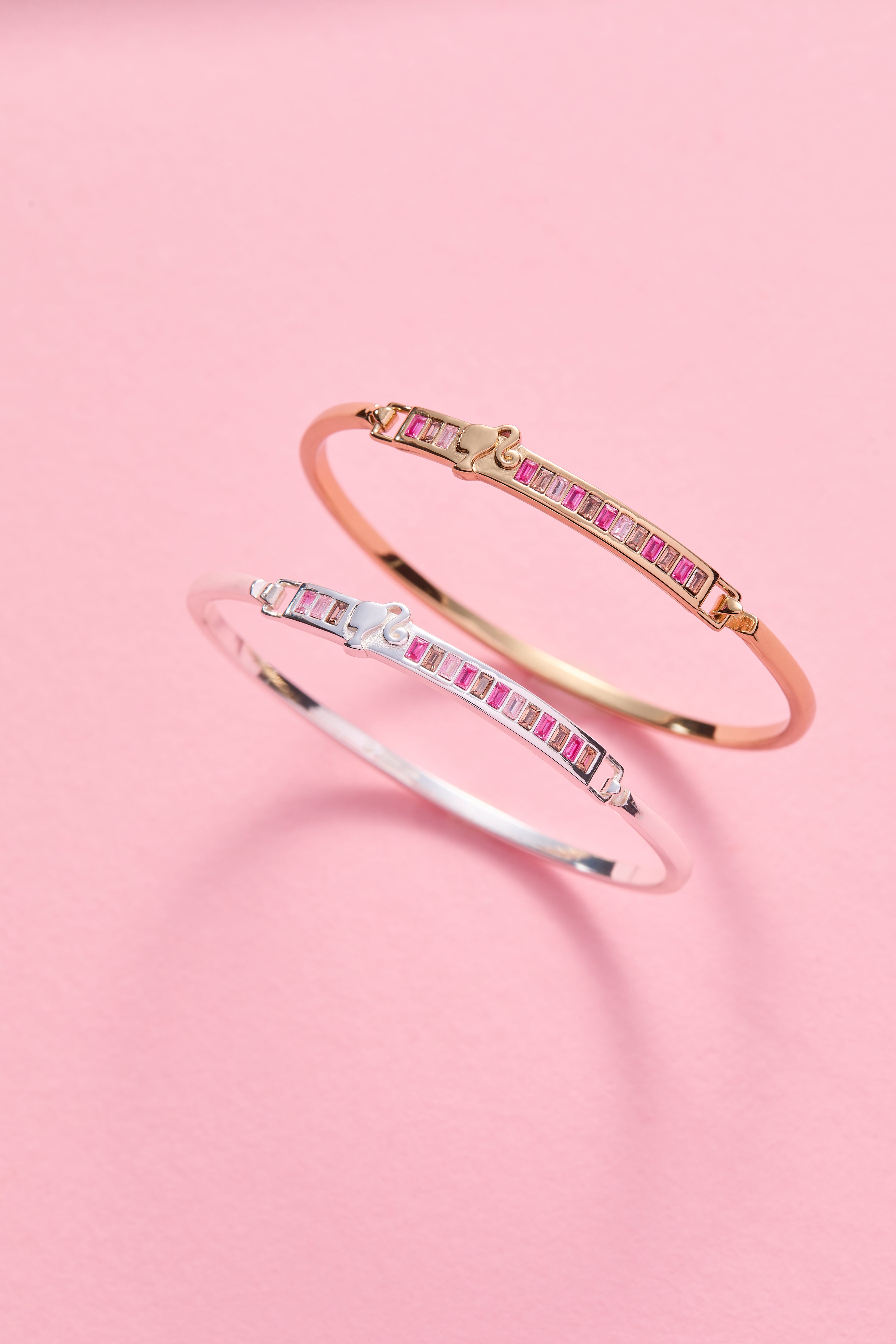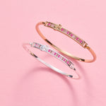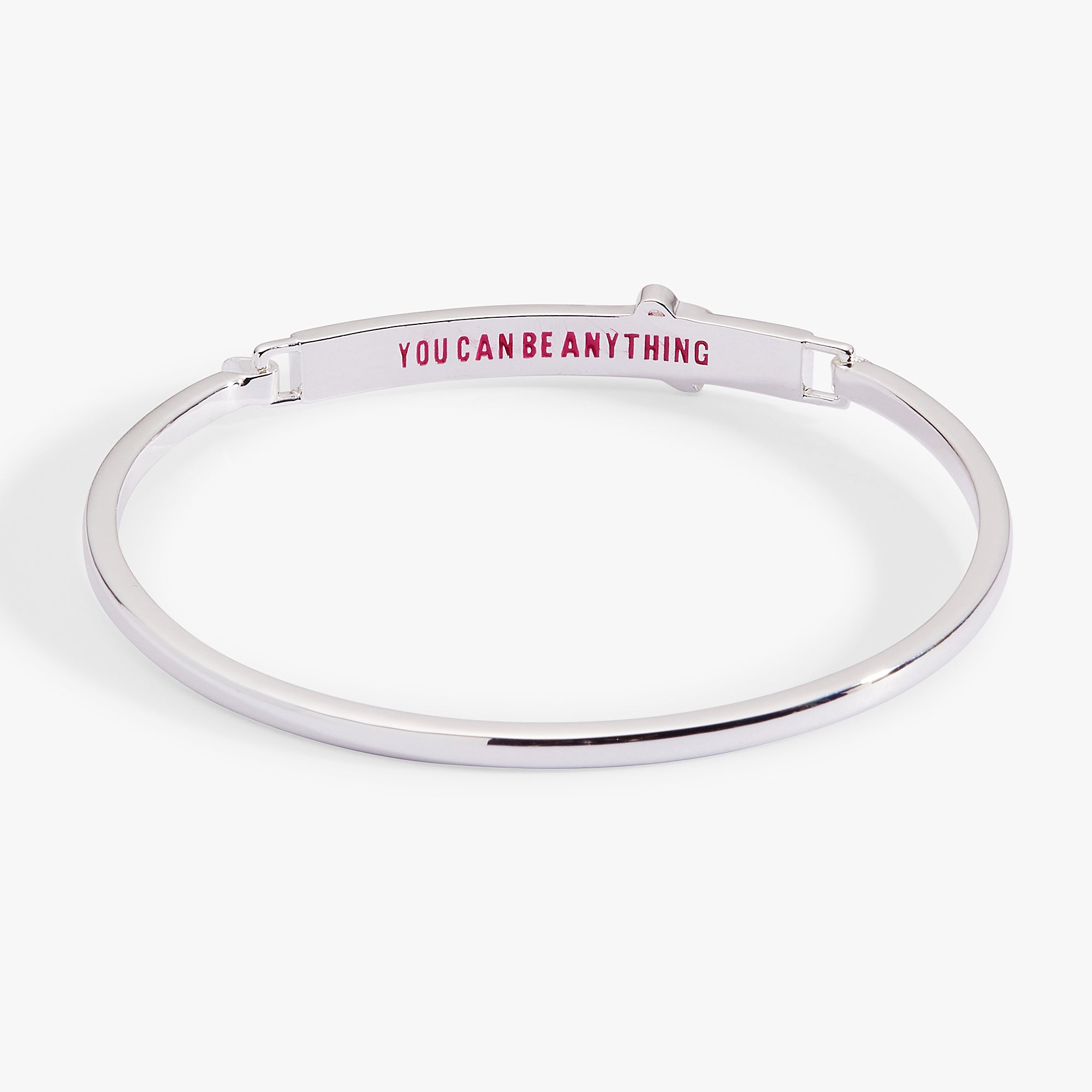 Celebrate empowerment with the Barbie™ You Can Be Anything Tension Bangle. Featuring tonal pink stones that add a festive sparkle, this elegant piece showcases the iconic Barbie head motif. Inside, a heartfelt engraved message with pink enamel inspires confidence and possibility: "You can be anything." Perfect as a meaningful gift or a stylish statement for yourself, this bangle blends timeless charm with a message of hope and ambition, making it a beautiful addition to your holiday jewelry collection.