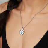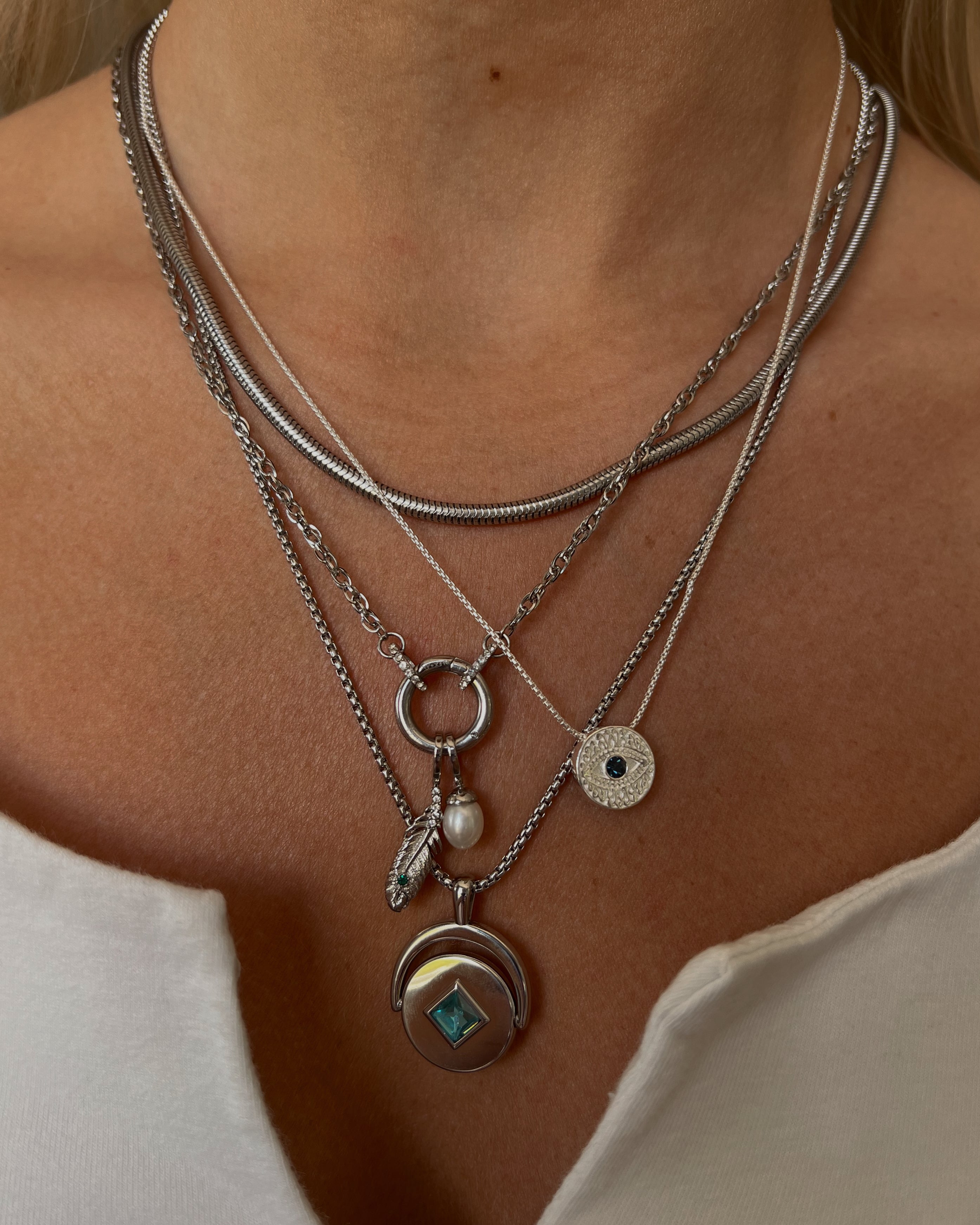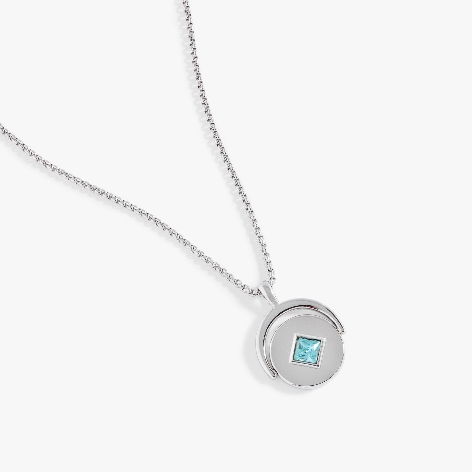 Dive deeper into the story of you with the combined power of birthstones and birth month flowers. The March Birthstone and Flower Flip Charm Necklace is made from stainless steel for everyday wear. This elegant necklace features a sparkling March birthstone aquamarine blue glass crystal on the front. Flip the charm to reveal an engraved cherry blossom flower with antique blackening detail for a more subtle look. You bring tranquility, peace and beauty to the world around you.