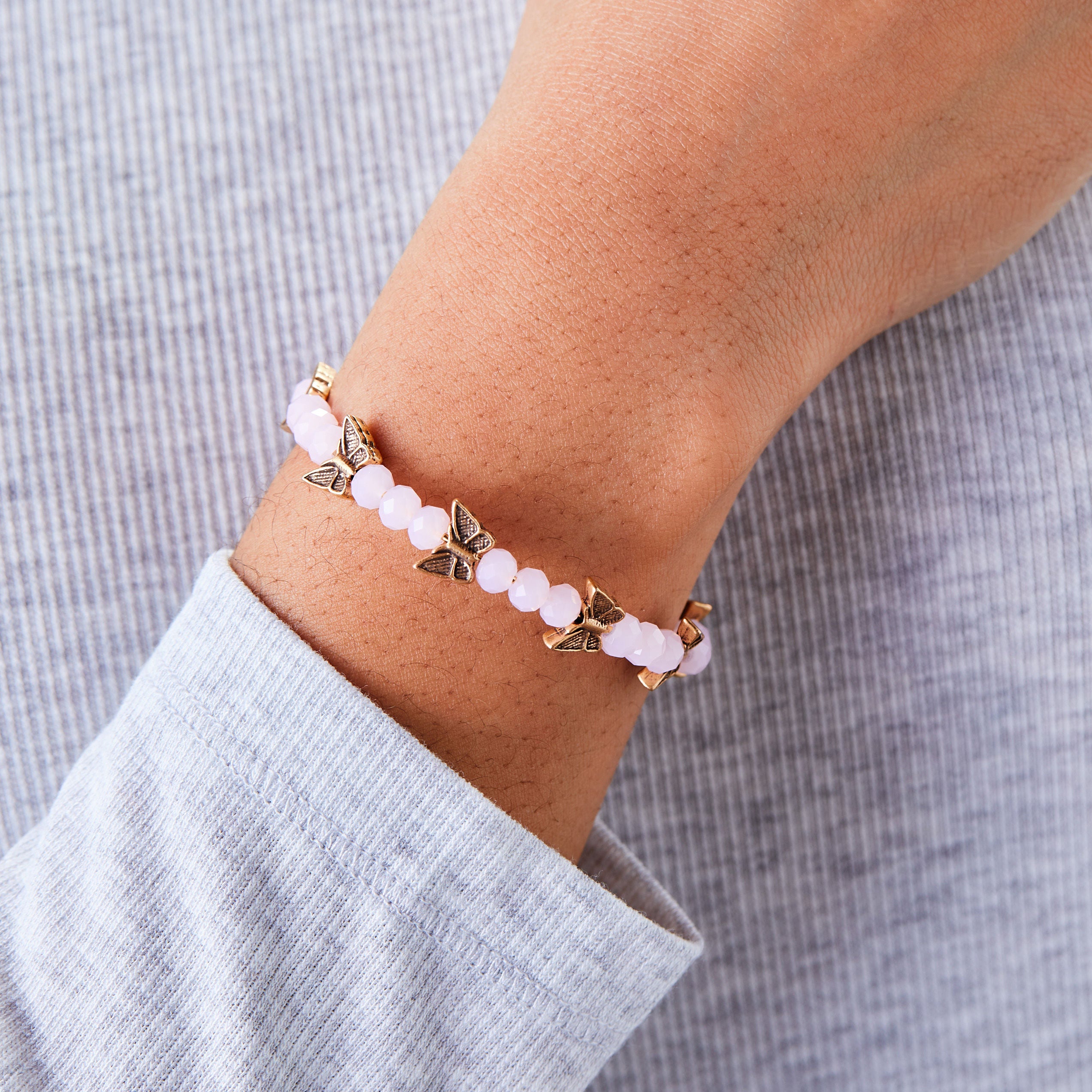 Butterfly Beaded Wrap Bracelet, Peony Pink