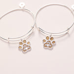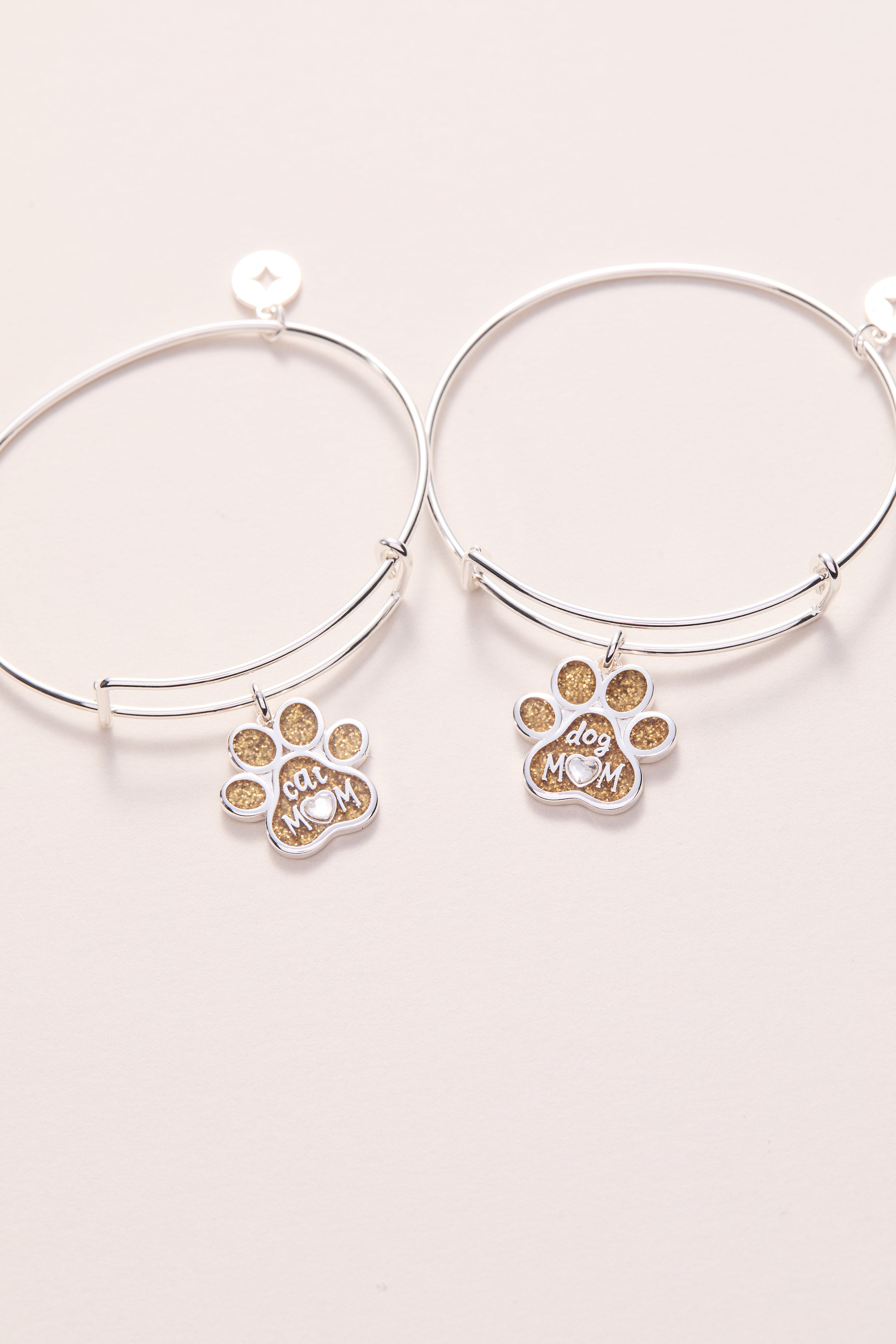 Celebrate your love for your feline friends with this playful charm bangle. Adorned with shimmering gold glitter enamel and a sparkling crystal heart, it proudly showcases the phrase "cat mom" in a fun, charming way. Perfect for everyday wear, this bracelet adds a touch of sparkle and personality to any outfit, making it an ideal gift for cat lovers who want to show off their purr-sonality with style.