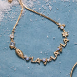 Celebrate the season with a playful twist wearing the Challah-la-la-la Bolo Bracelet. This unique piece spells out a fun pun with a dimensional challah bread charm and musical notes, bringing a festive melody to your wrist. Sparkling bezel-set clear and aquamarine stones catch the light, while a charming dreidel adds an extra touch of Hanukkah magic. Perfect for stacking, this whimsical bracelet effortlessly adds holiday cheer and sparkle to any outfit. Whether gifting or indulging, it’s a delightful way for fans of themed charms and puns to shine through the season.