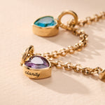 This charming birthstone piece features a sparkling heart-shaped amethyst-colored cz stone nestled in a bezel setting, complete with our signature star-shaped cutout on the back. Marked with "Clarity" on the side, it’s designed for February birthdays. Add a splash of color and personal meaning to your bracelet or necklace stack with this playful and unique heart charm.