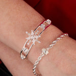 This openwork cuff shines bright with dazzling pave crystal accents that catch the light from every angle. At its heart, a delightful crystal snowflake adds a playful and festive touch, making it the perfect accessory to brighten up any outfit. Whether you're celebrating the season or simply craving a bit of sparkle, this bracelet brings joy and charm to your wrist.