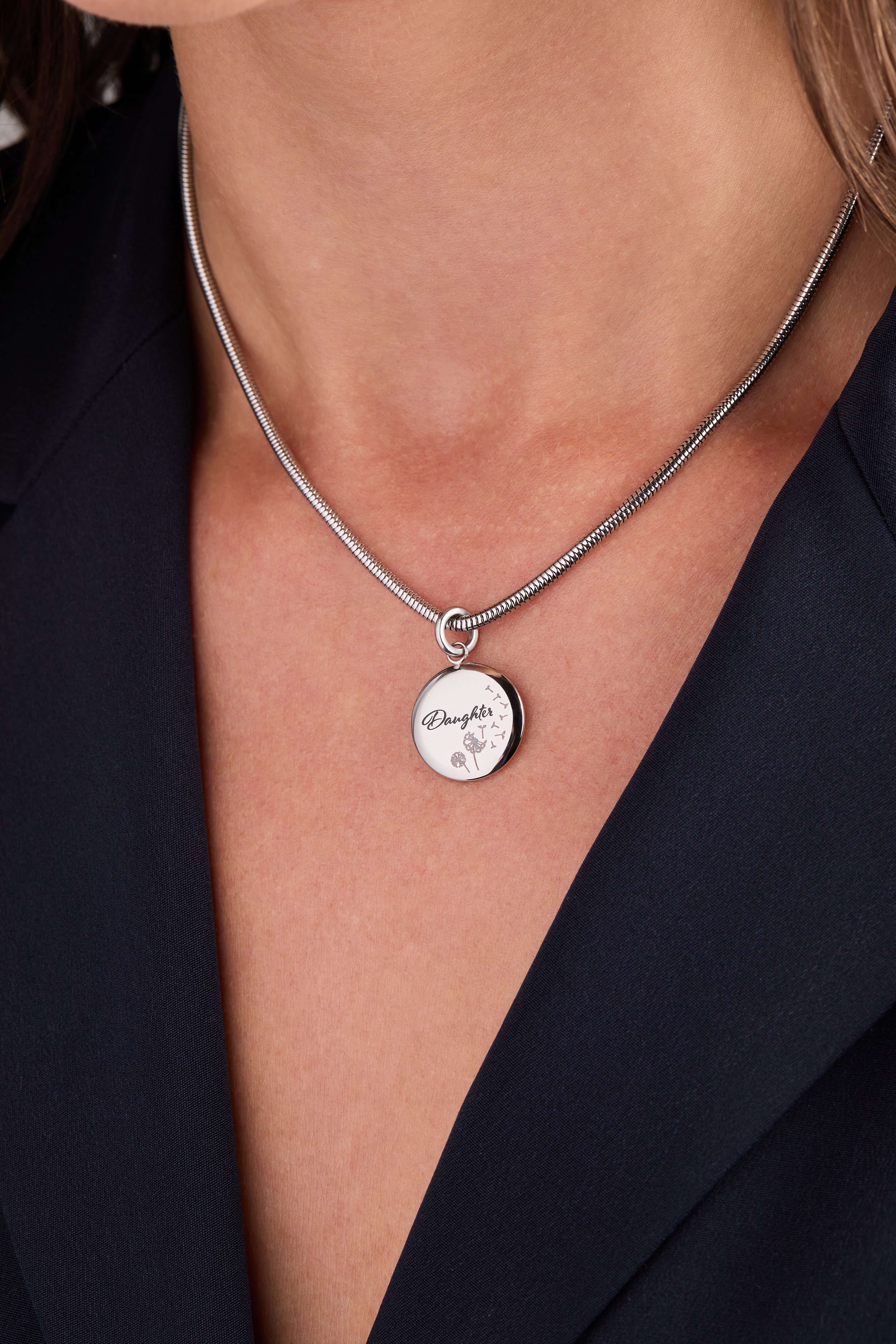 Celebrate the bond you share with this enchanting Daughter charm, adorned with delicate dandelion etchings that catch the light beautifully. Flip it over to discover an inspiring message: "Side by side or miles apart, family will always be connected by heart." A meaningful reminder that love transcends distance, this interchangeable charm transforms your bracelet or necklace into a personal keepsake that honors the special woman in your life.