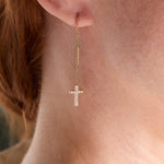 Delicate Pave Cross Threader Earrings