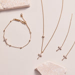 Delicate Pave Cross Threader Earrings showcase refined elegance through their thoughtfully designed construction. Crafted from gold-plated sterling silver, each cross features shimmering clear crystal pave stones that catch the light with subtle sophistication. The thin threader chain design offers a contemporary take on classic styling, allowing for effortless wear and comfortable all-day comfort. These heirloom-quality earrings seamlessly blend timeless spiritual symbolism with modern aesthetic sensibilities, making them an ideal choice for those seeking to express their faith through jewelry. The delicate proportions and luminous details create a versatile piece that complements both everyday wear and special occasions. Pair them with coordinating cross pendant necklaces and matching bracelets to create a cohesive, layered look that speaks to your personal style and values.