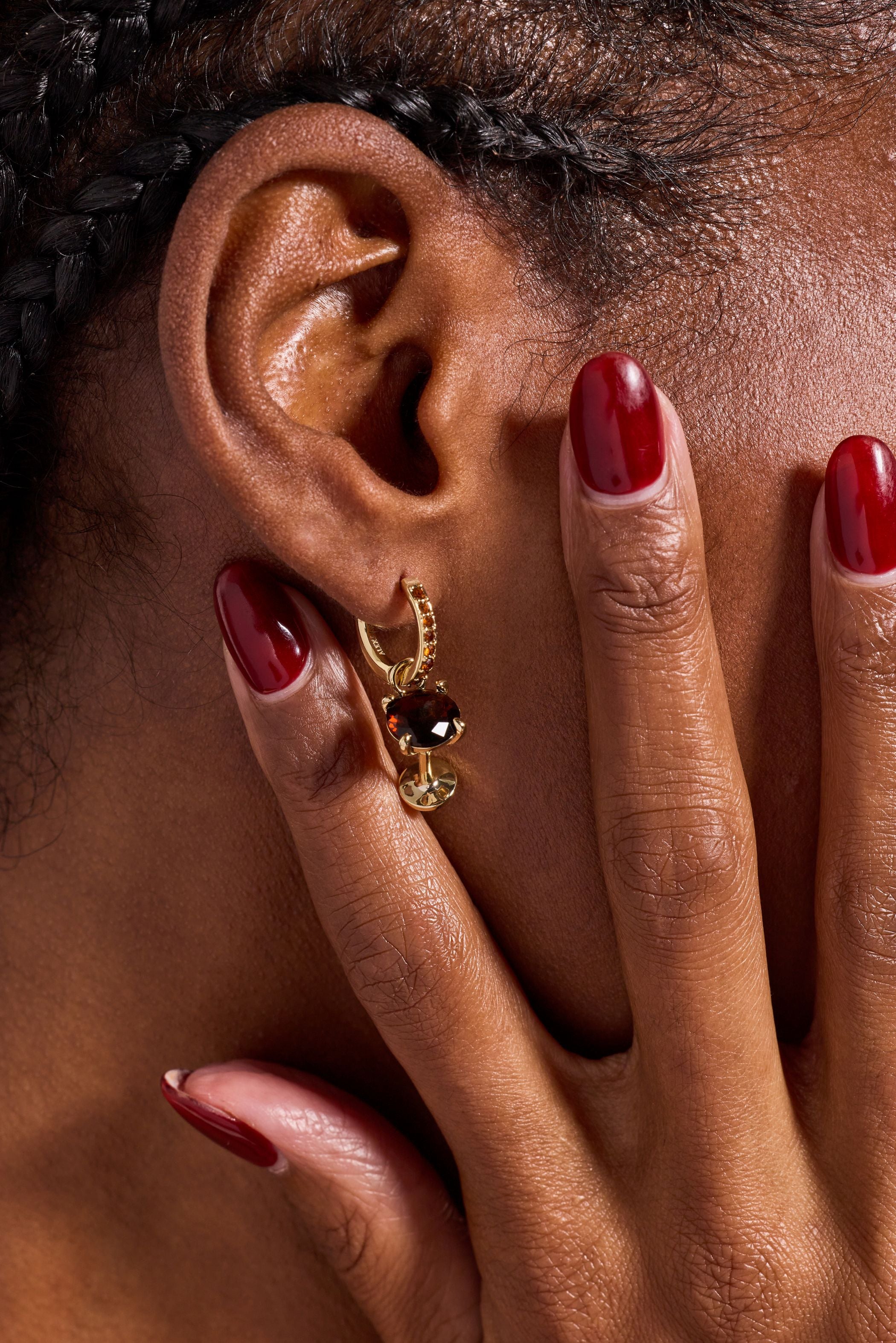 Calling all espresso martini enthusiasts! This delightful huggie hoop set features gold-plated pave detailing with smokey quartz crystals that catch the light beautifully. The set includes two removable charms—a chocolate coffee bean and a show-stopping 3D martini glass charm adorned with a smokey quartz crystal. Mix and match to suit your mood: wear the hoop solo for understated elegance, add the coffee bean for a subtle nod to your favorite pick-me-up, or go full cocktail hour with the martini charm. Perfect for anyone who celebrates the finer things in a fun, fashionable way.