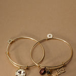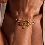 Calling all espresso martini enthusiasts! This gold-plated expandable bangle brings the perfect blend of style and spirit. Featuring a chocolate-plated coffee bean charm, a fully three-dimensional martini glass adorned with smokey quartz, and a whimsical "tini time" openwork script charm, it's a celebration of your favorite cocktail on your wrist. Whether stacked with other pieces or worn solo, this playful bracelet adds just the right amount of personality and charm to any look.